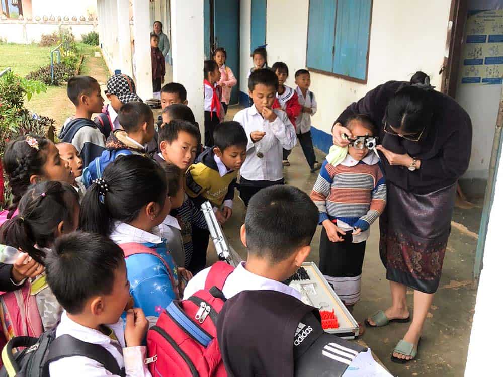 De opticien ging langs bij basisschoolleerlingen in het district Khoun, provincie Xiengkhuang in Laos.