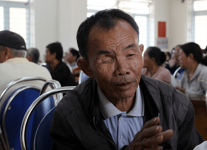 Zelf komt hij het hele eind op de fiets naar het oogonderzoekskamp in het dorp Hoa Lai in de Mekong delta. “Mijn kinderen wilde ik hier niet mee belasten. Die moeten al zo hard werken voor hun inkomen”, vertelt hij.