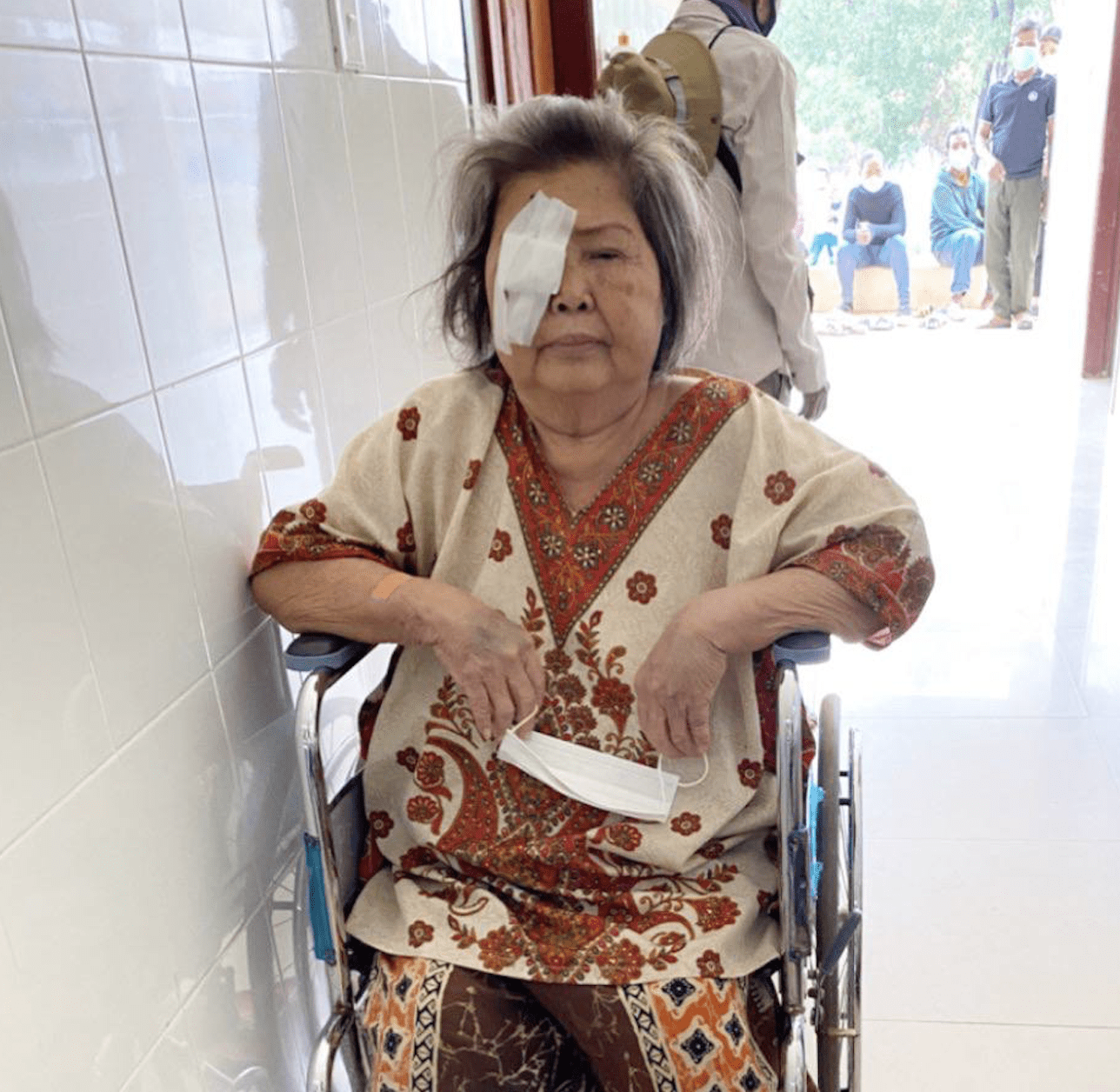 Mevrouw Muy Kear meldde zich bij het mobiele oogzorgteam voor de operatie.
