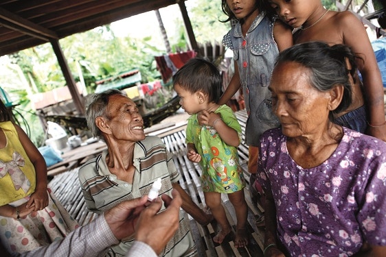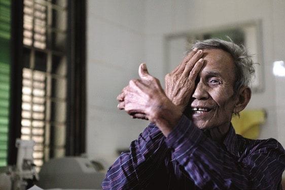 Pin Phat (75) heeft altijd hard gewerkt en voor zijn familie gezorgd. Maar nu was hij afhankelijk en eenzaam. De wereld was, doordat hij staar aan beide ogen had, voor hem zo klein geworden dat hij zelfs zijn eigen uitgestrekte handen niet meer kon zien. “Toen ik Phats ogen onderzocht vertelde hij mij dat hij voor alles zijn vrouw nodig had. Dat was zwaar voor de hele familie”, zegt oogverpleegkundige Keo Pheara, die Phats dorp bezocht.