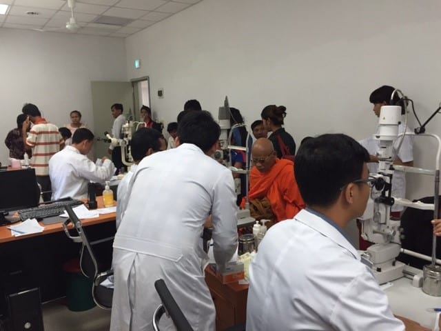 Lesgeven aan oogartsen in opleiding in Cambodja