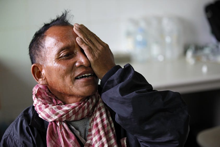 Het enige dat Phoeurng Heng (58) wilde, was voor zijn zoontje Arun kunnen zorgen. Hij zei het me wel drie keer terwijl ik zijn ogen onderzocht. Deze vader is een sterke man. Maar die dag zag ik vooral een blik van angst en verdriet in zijn blinde ogen. Voor mij zat een man die de hoop begon op te geven. Ik moest hard praten tegen meneer Heng, anders hoorde hij mij niet. Hij was al een paar jaar slechthorend. En hij zag ook nauwelijks meer. Hij had staar aan beide ogen en hierdoor was hij langzaam een blinde vader geworden. Het was al niet gemakkelijk voor Phoeurng Heng sinds zijn vrouw negen jaar geleden overleed. Elke dag had hij zich sterk kunnen houden – voor zijn zoontje. Dat lukte hem, maar het was loodzwaar.